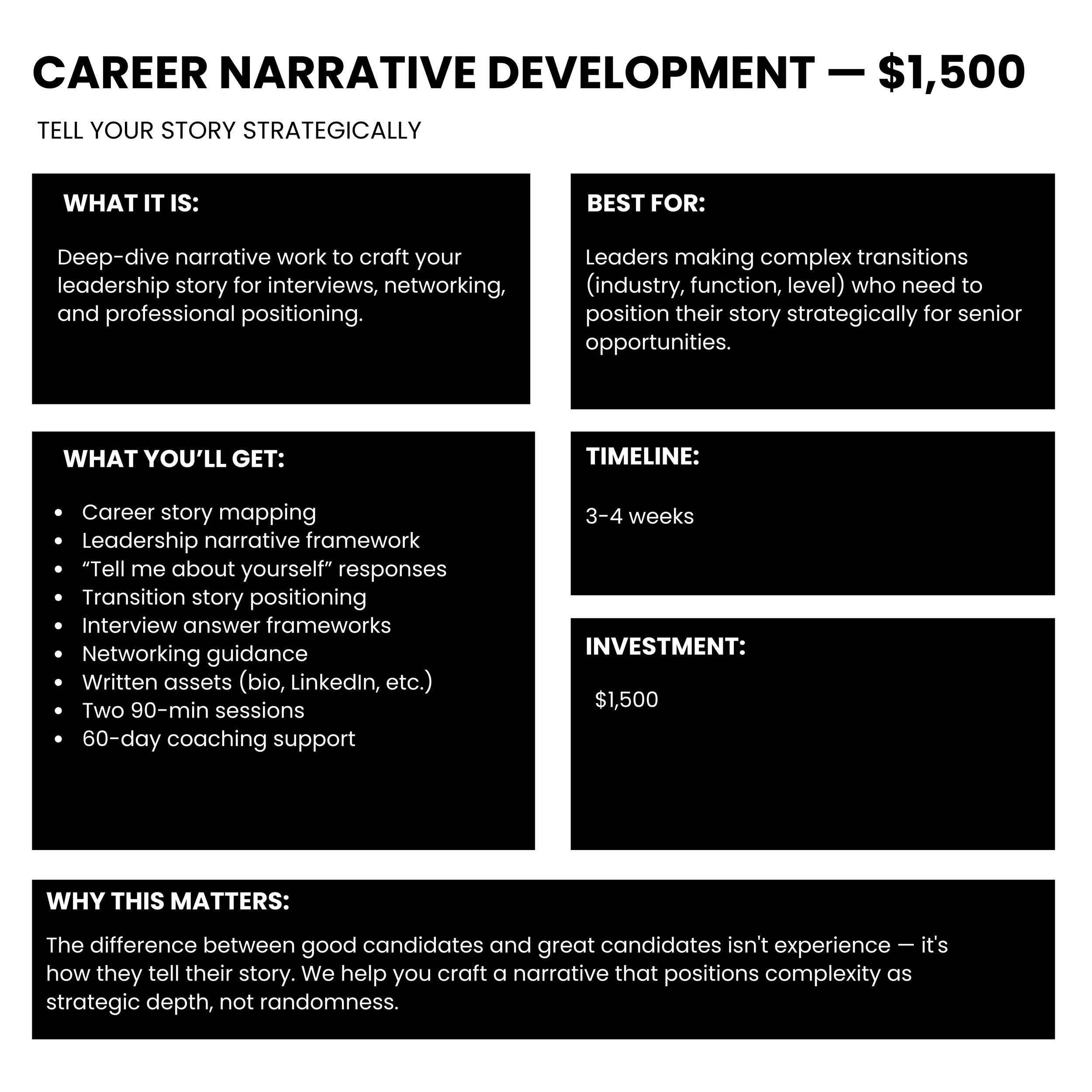 → Portfolio Review ($1,200) + Career Narrative ($1,500)